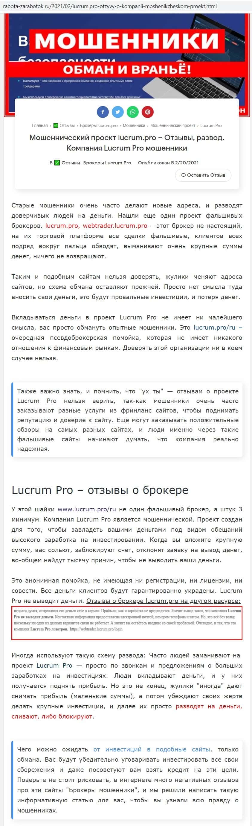 - Обзорные статьи о мошенниках Лукрум Про в интернете