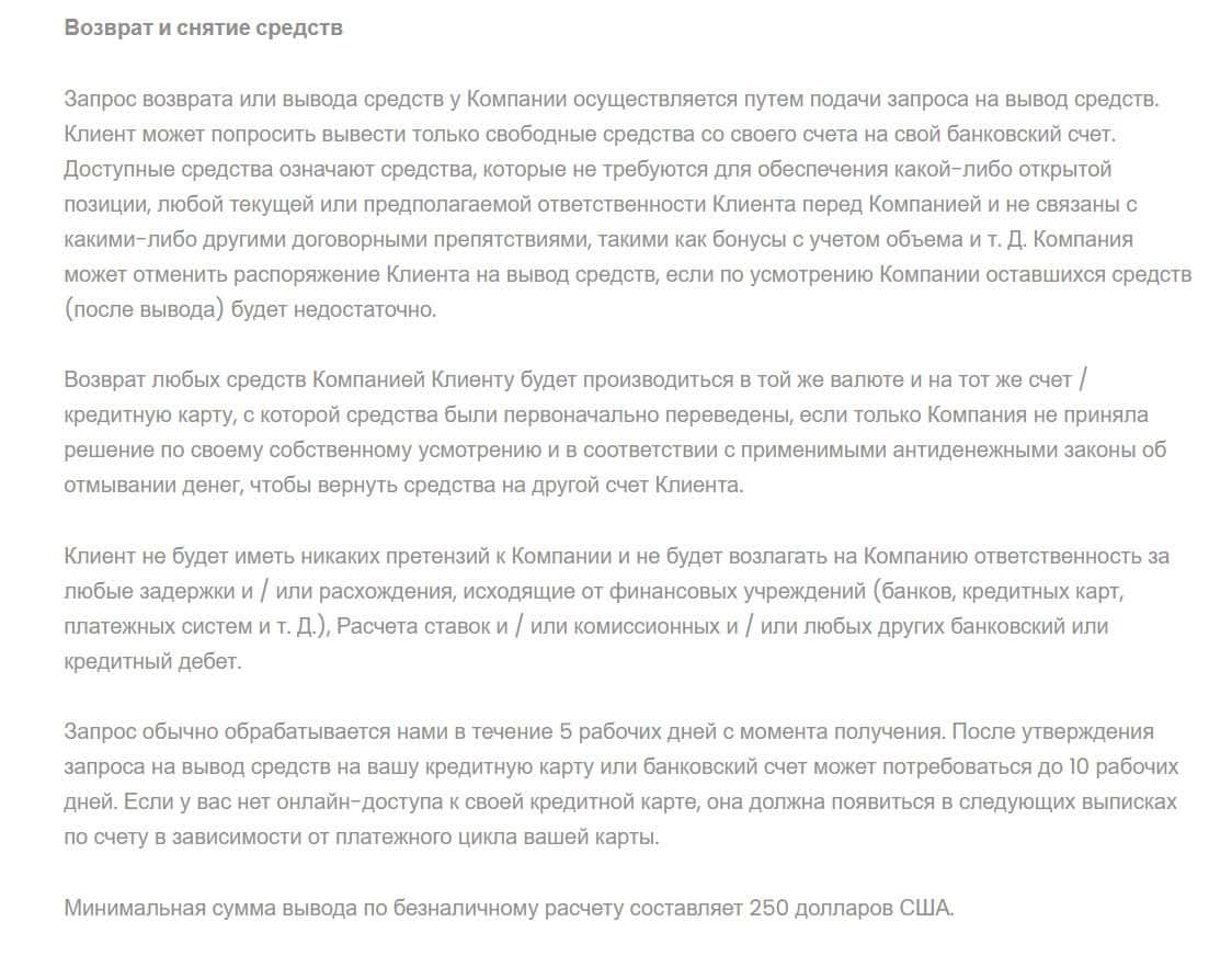 Далее пользователь может узнать о том, как сделать снятие средств с его счета, а также, возврат и какие ограничение есть у компании Lucrum Pro относительно этих операций.