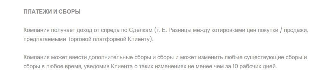 В разделе Сборы и платежи говорится о том, что компания Lucrum Pro взимает с клиента определенные сборы и комиссии, а также, может менять их на свое усмотрение.