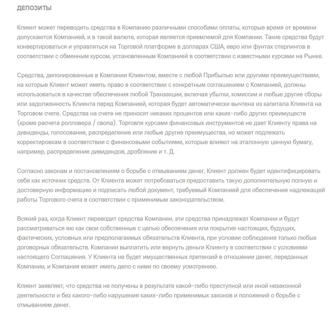 Следующий раздел договора Lucrum Pro сообщает о том, как можно пополнить депозит, какая валюта используется и другие важные вещи, которые надо внимательно изучить.