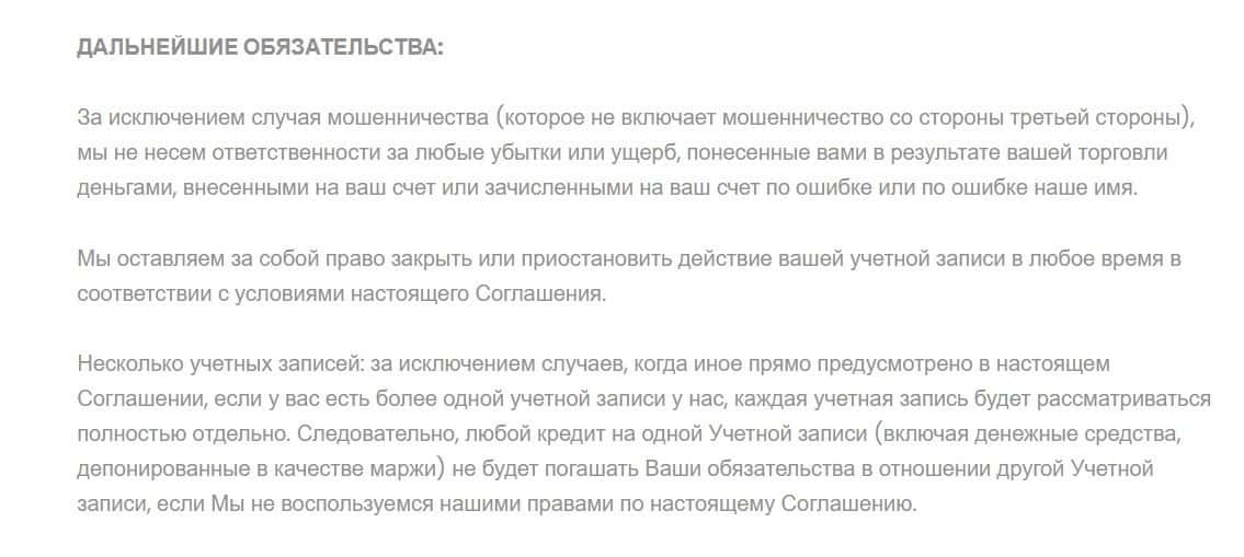 Далее компания Lucrum Pro заявляет, что не несет никакой ответственности за любые убытки клиента на своем сайте.