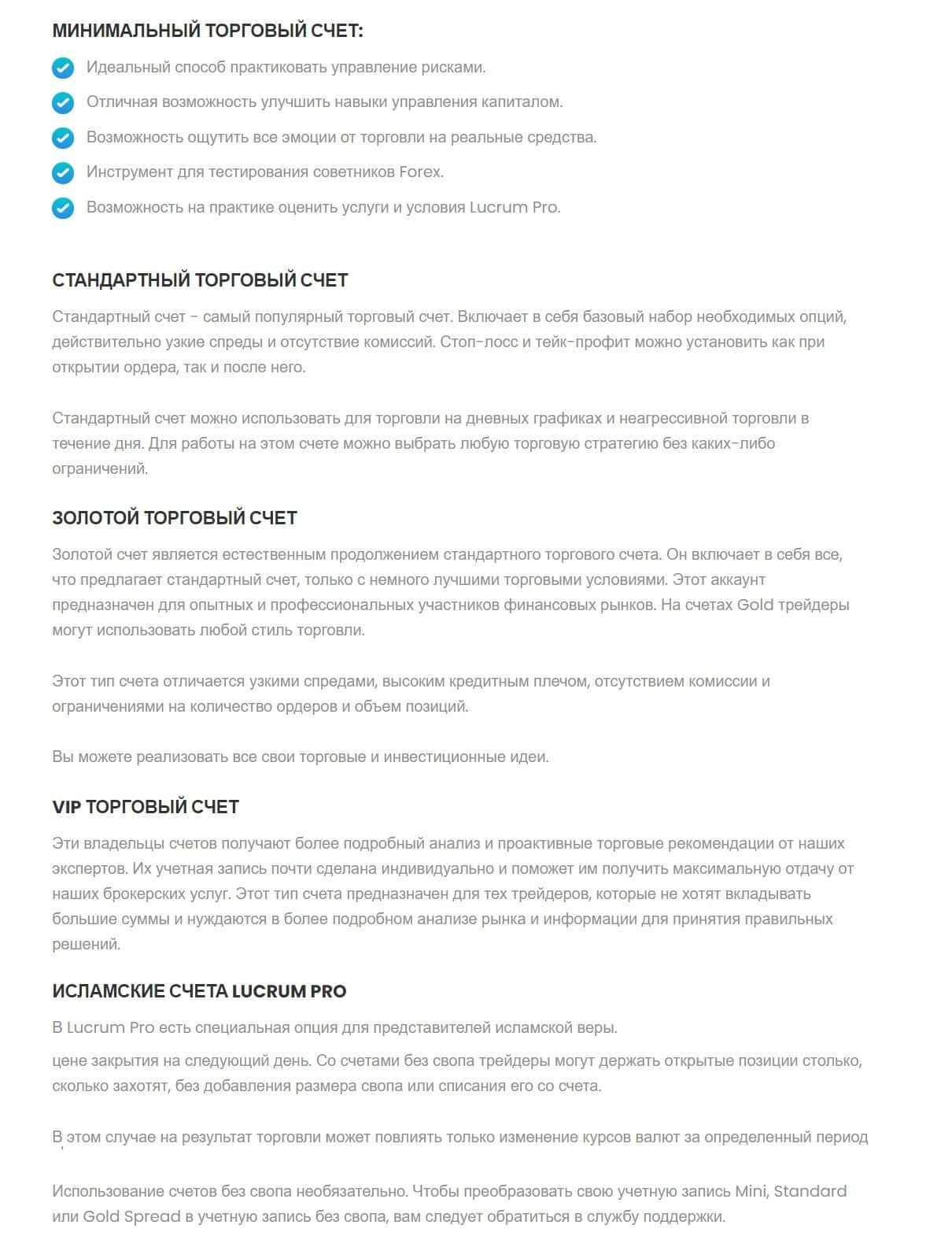Типы счетов брокера Лукрум Про - такой же фейк, как и сама шарашка, так как в них не указаны даже допустимые лимиты для работы на валютной бирже.