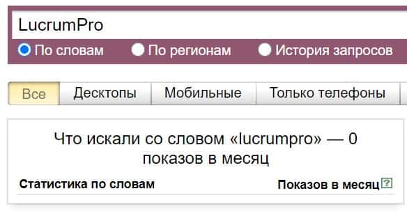 То же название "Lucrum Pro", но написанное с пробелом, люди пытались найти в системе Яндекс 146 раз.