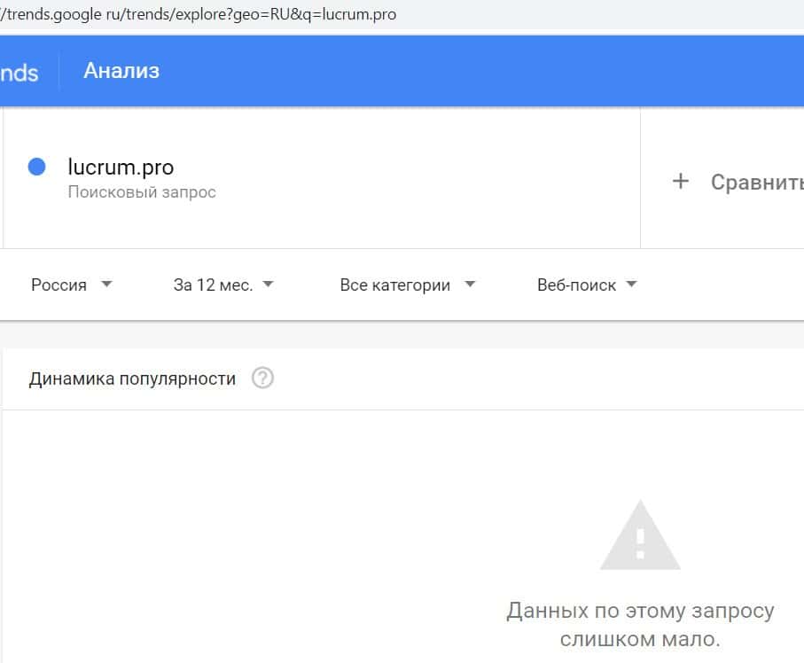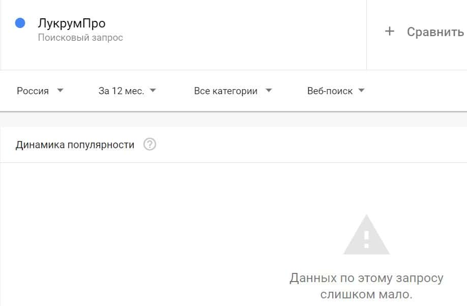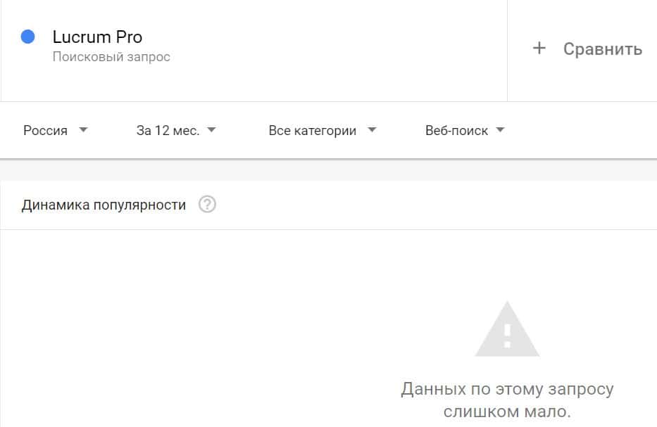 Посмотрим, насколько популярно название бренда "LucrumPro", написанное на английском языке. Данных по этому запросу нет, так как никто не искал этот бренд в Гугл.