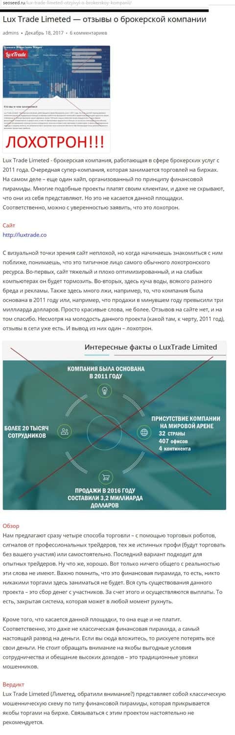 Lux Trade - очередные мошенники в виде фальшивого кухонного forex-брокера