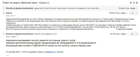 Люкс Трейд Лимитед предоставляют мошеннические услуги через ЗАО "Бест-Инвест"