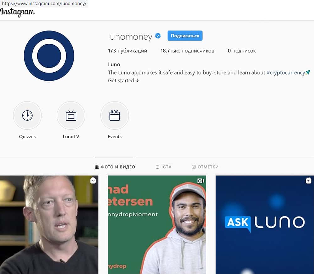 Молодое поколение больше любят использовать социальную сеть для обмена фотографиями instagram com. Не прошли мимо возможности использовать ее и онлайн-хапуги Луно. Обманщики заполнили ее многочисленными роликами, в которых подставные люди и сами сотрудники конторы расписывают все ее прелести.