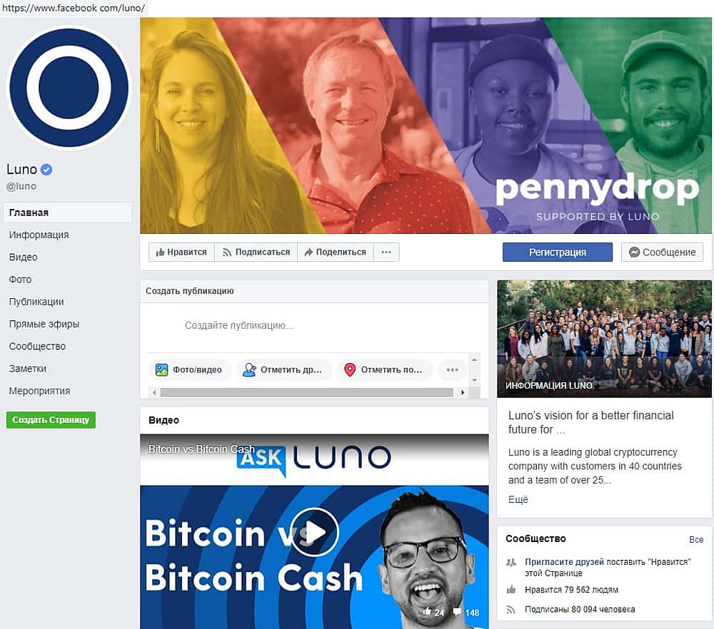 Очень удобно для привлечения новых жертв использовать социальные сети. Так и решили фиктивные участники крипторынка и завели себе страничку на facebook com. Заполнили ее всевозможными постановочными роликами с интервью якобы счастливых своих клиентов и всевозможными промо-видео с завлекающими текстами.