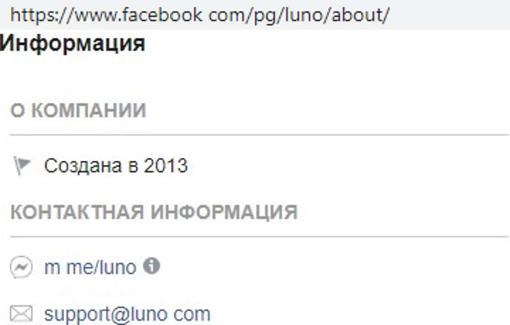 Со связью конечно аферисты и проходимцы Luno напрягаться не стали. Нет связи - нет претензий. Кое-как удалось разыскать на сайте форму для подачи тикетов в службу поддержки. Электронная почта нашлась в группе соцсети Facebook. Адрес вообще нигде не фигурирует - он присутствует только в регистрационной карточке аферистов. Контакты разводил Luno:
