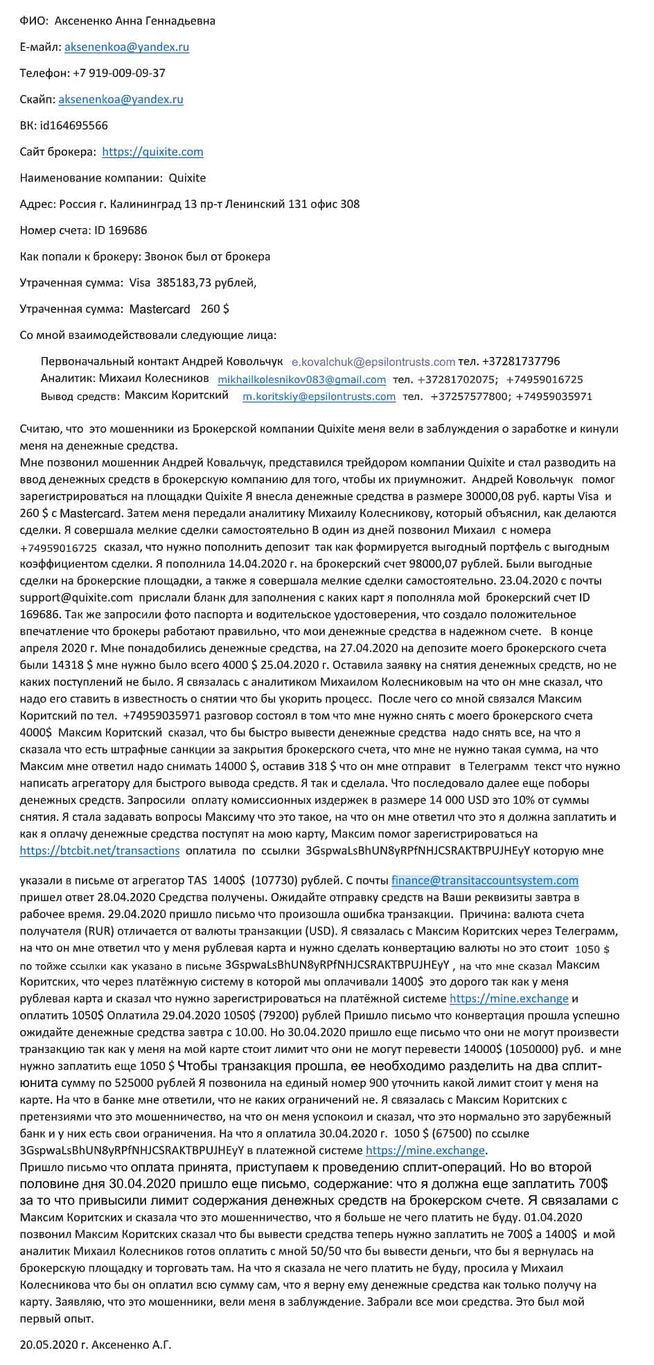 Жалоба в том числе и на мошенническую организацию Майн Эксчендж
