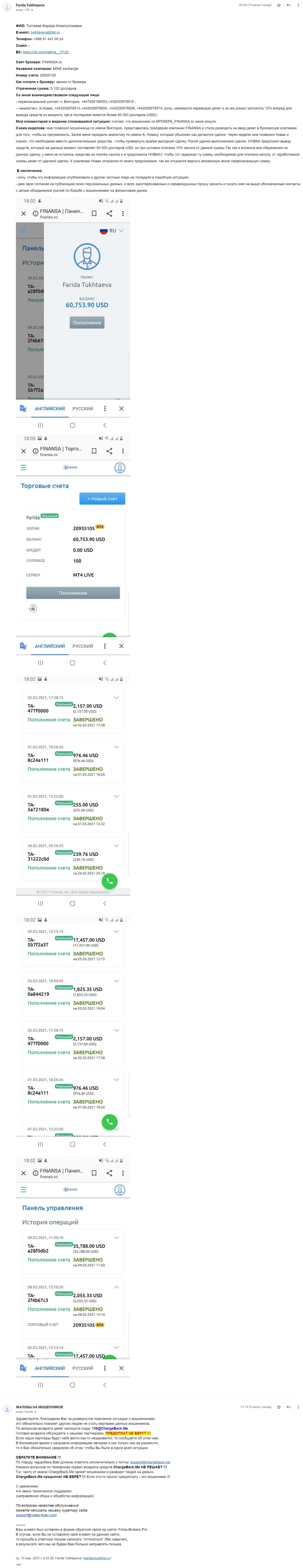 - Аферисты Майн Эксчендж совместно с шарагой Финанса обманули клиента на 5100 $