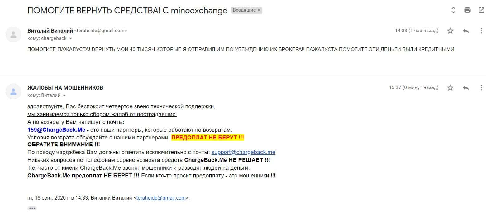 - Жалоба на Mine Exchange от очередного пострадавшего клиента