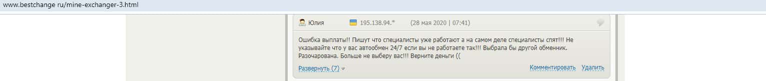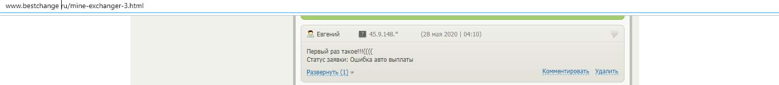 Юлия стала не единственной жертвой Майн Эксчендж, их огромное множество. К примеру Евгений тоже очень сильно разозлился из-за недобросовестной работы Майн Эксчендж и оставил негативный отзыв об этом лохотроне-обменнике на портале bestchange ru. Благодаря таким людям, мы можем видеть, что Майн Эксчендж не чистая контора.