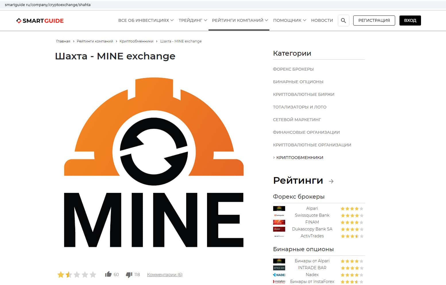 - Mine Exchange заработал более половины отрицательных отзывов на smartguide ru