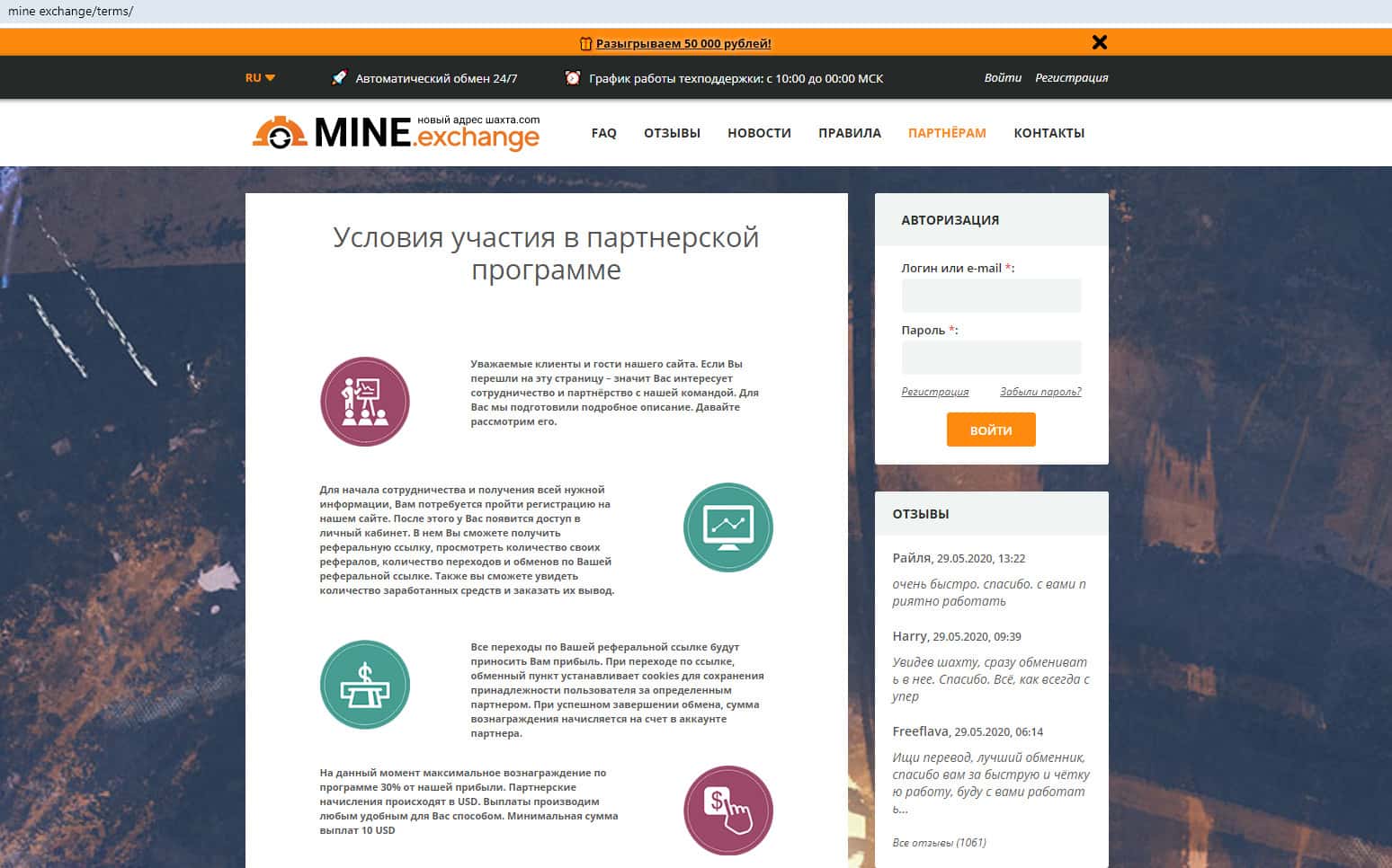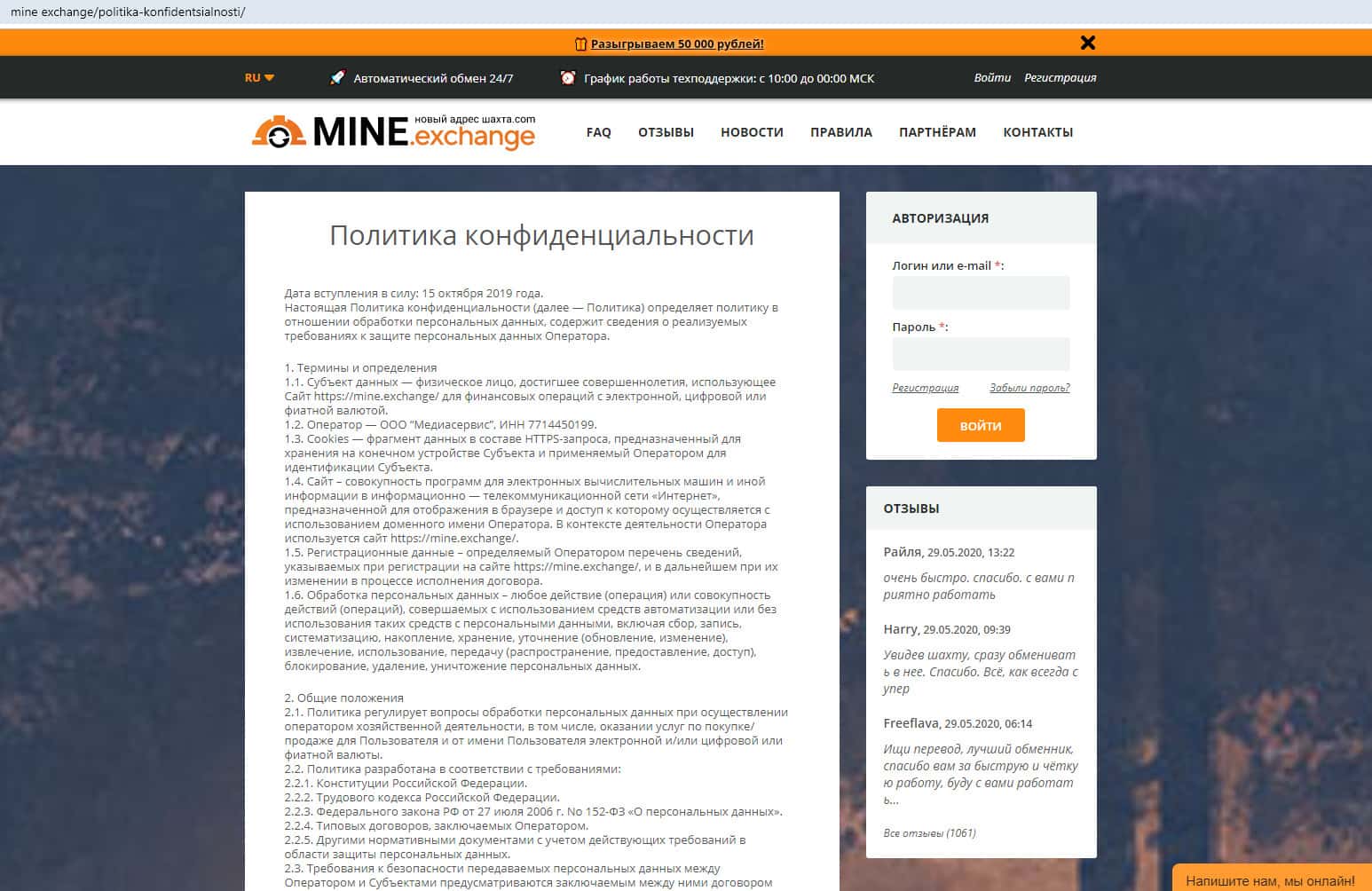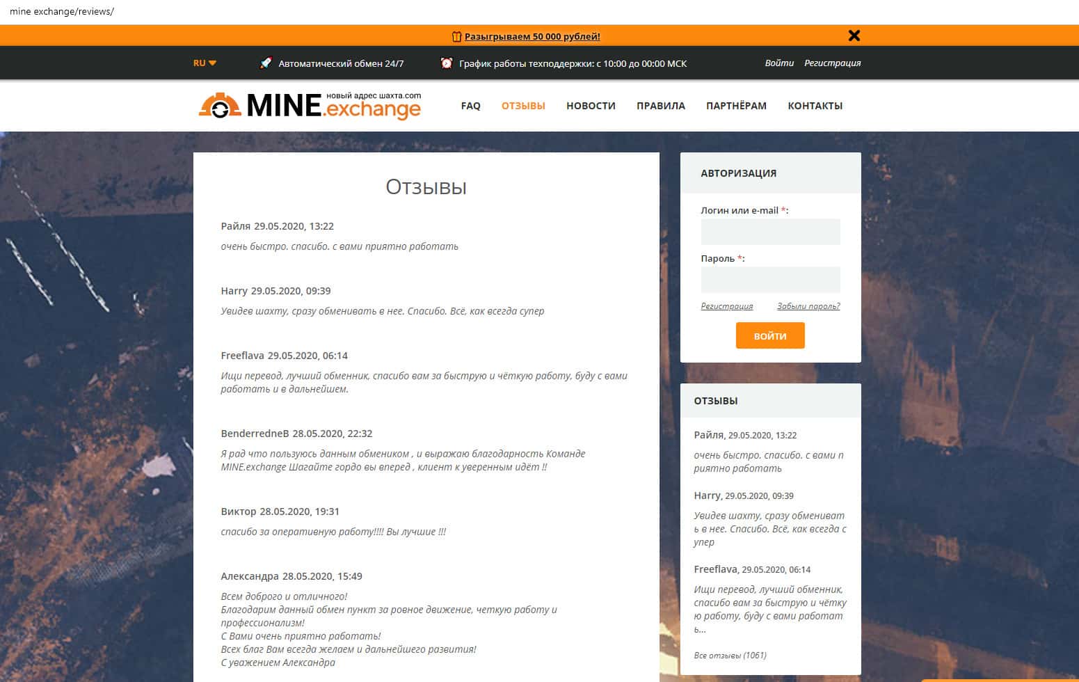 Отзывы о работе Майн Эксчендж на самом сайте mine exchange