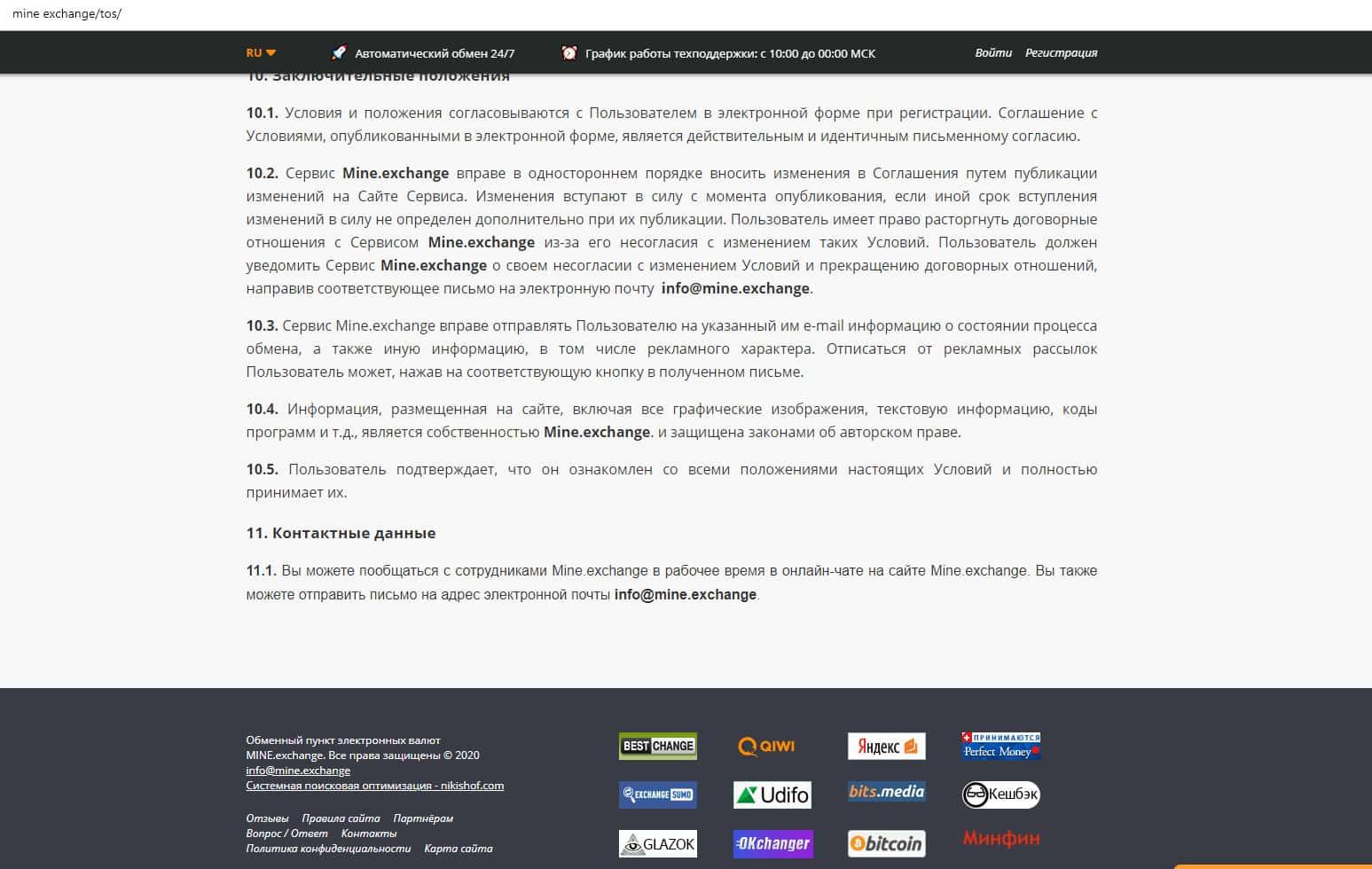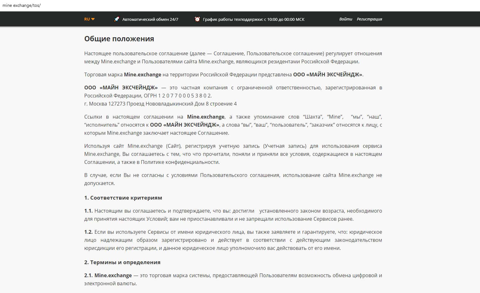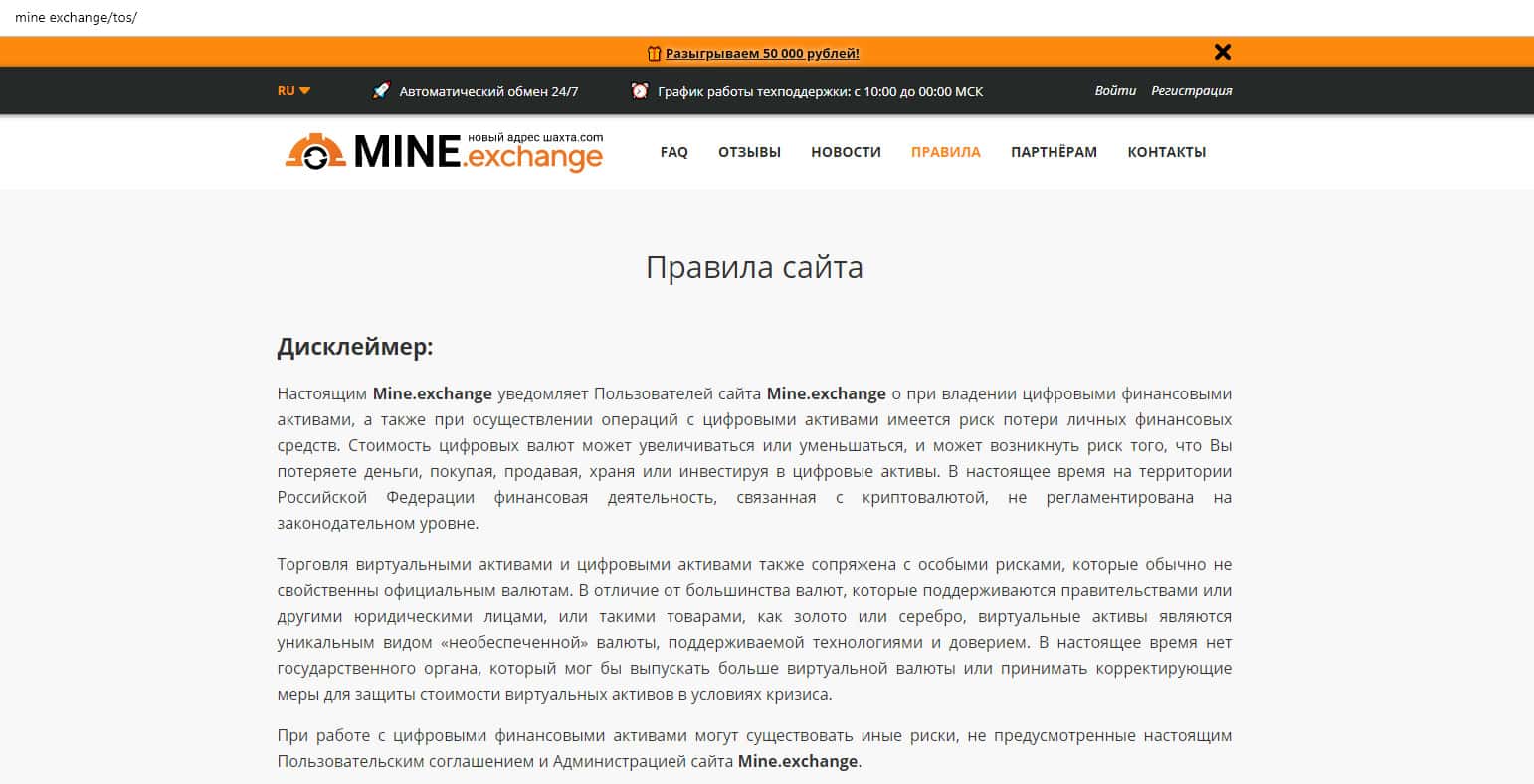 На сайте mine exchange расположено «Пользовательское соглашение», в котором нас пытаются убедить, что у владельцев Майн Эксчендж только самые лучшие намерения в отношении своих клиентов, но при этом там есть нюансы, о которых не говорится на остальных страницах сайта. Сервис ориентирован на ленивых и глупых пользователей интернета.