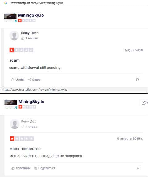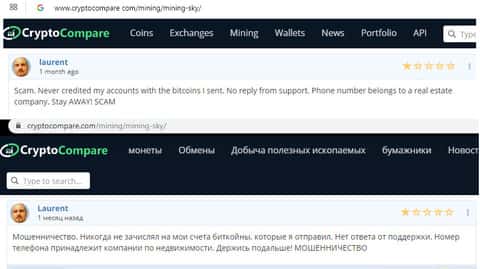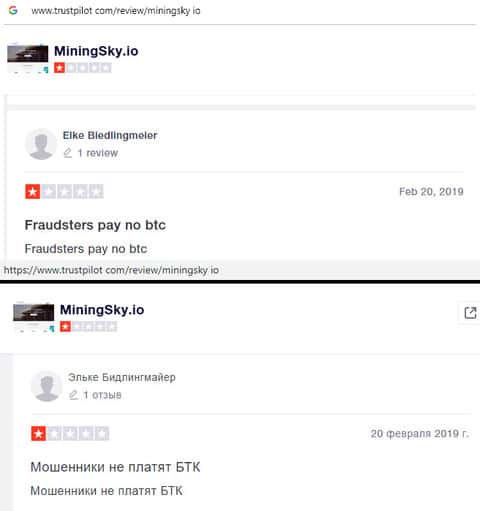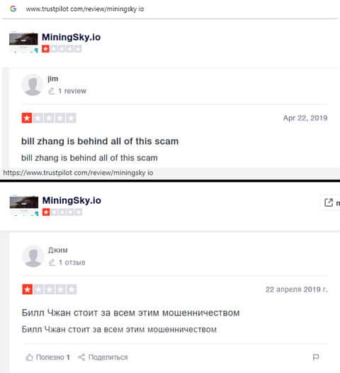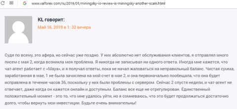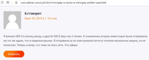 - Негативный отзыв в сторону интернет-аферистов MiningSky