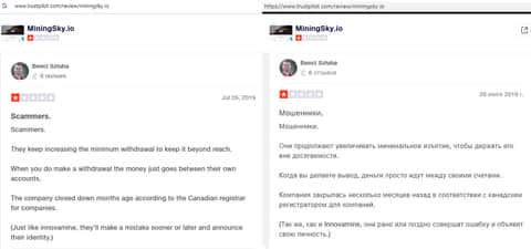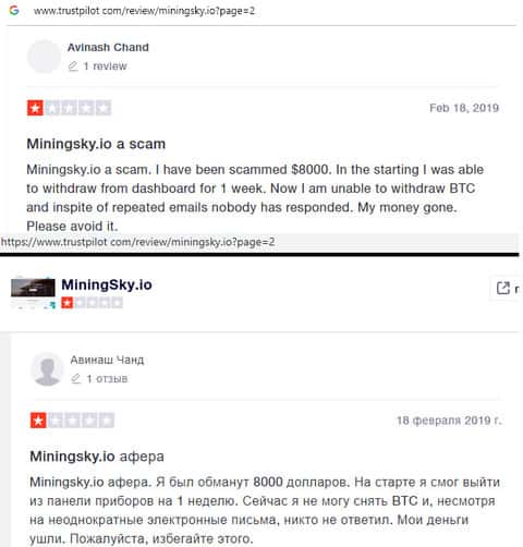 - Подробный отзыв о мошенничестве со стороны конторы MiningSky
