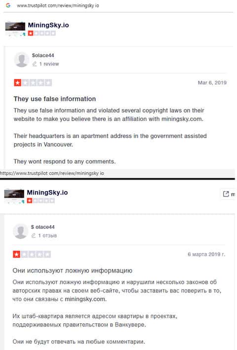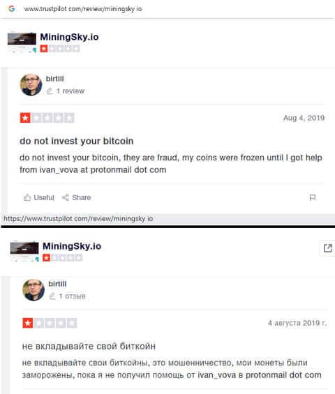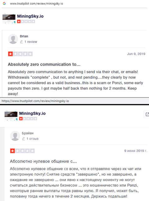 - Негативный отзыв о майнинговом хайпе MiningSky