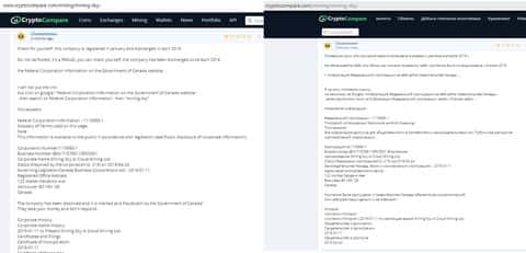 В следующем отзыве нам предоставляют ознакомиться с регистрацией конторы MiningSky в Канаде в январе 2019 года. А потом, в том же году, аферисты доигрались и правительство решило прикрыть шарашкину контору. Вот только сайт продолжает работать и обворовывать честных людей.