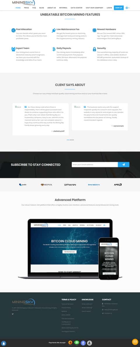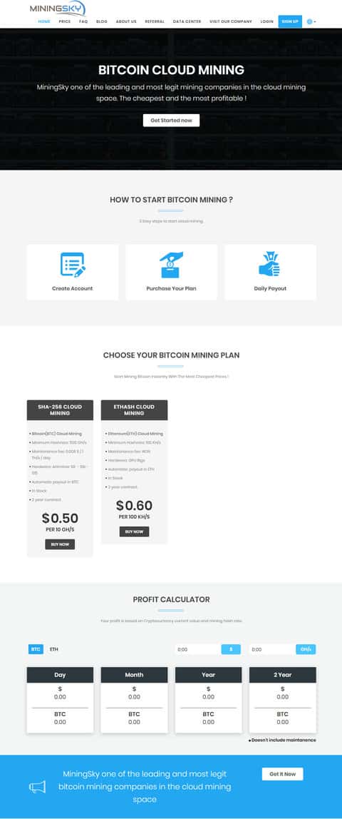 Мошенническая кухня MiningSky разработала некоторые уловки на своем сайте, используя технологии заманивания клиента путем преследующей кнопки открыть счет и инвестировать в их облачный майнинг. Вся система очень напоминает хайп, только он создан на основе майнинга криптовалют.