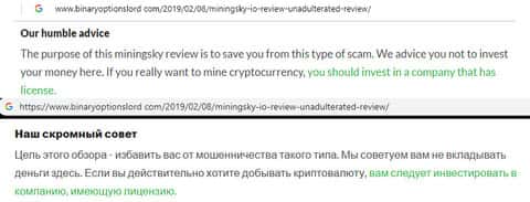 Интернет-ресурс высказался не в пользу аферистов Майнинг Скай