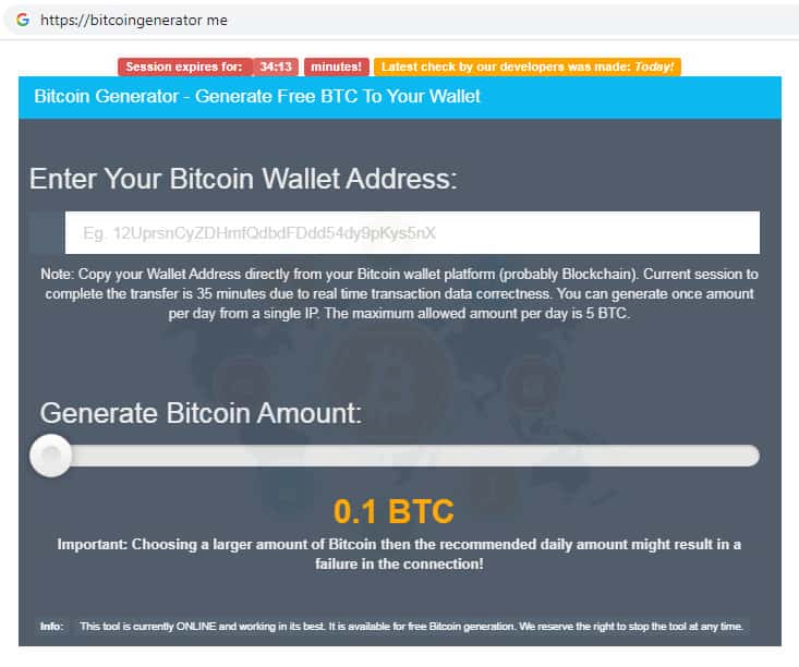 Мошеннический сайт bitcoingenerator me создан специально для тех людей, которые верят в прибыль из неоткуда. Таких выдуманных генераторов биткоина - самой популярной криптовалюты в интернет сети, достаточно. Прежде чем лохонуться и поверить обещаниям подобных контор, необходимо посчитать сколько несоответствий обнаружено.