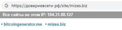 Сайт мошенников Mizes находится на одном ip-адресе с сайтом bitcoingenerator me