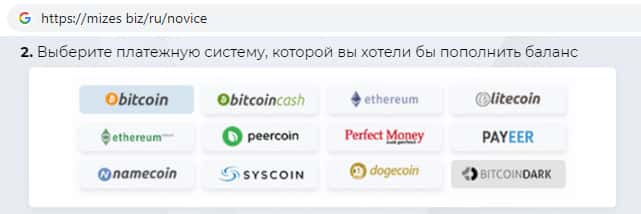 - С помощью каких платежных систем осуществляется перевод средств на сайте мошенников Mizes?