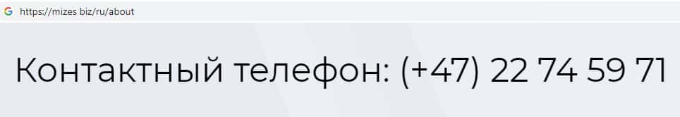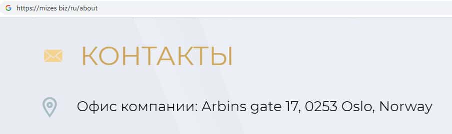 Главный офис скам-компании Майзес, согласно найденной информации на сайте мошенников, находится в Норвегии. Соответственно русскоязычным интернет пользователям данная шарага не очень подходит. Поэтому связываться с мошеннической конторой Mizes не имеет смысла.