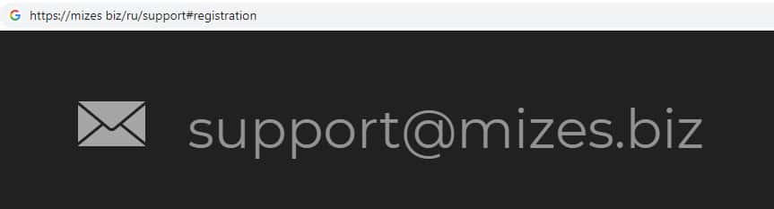 Мошенники Mizes на своем официальном сайте указали адрес электронной почты своей компании, который указан ниже: