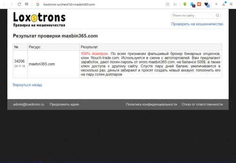 Результат проверок Макс Бин 365 людей с loxotrons ruFxtraders info подробно рассказал о махинациях этих двух "фирм", среди которых Макс Бин 365