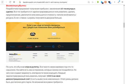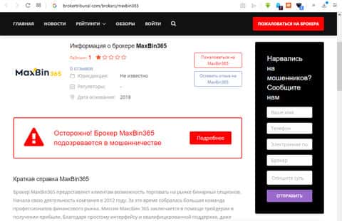 Статья о MaxBin365 с сервиса brokertribunalBezobmana24 назвал причины почему Макс Бин 365 - мошенники