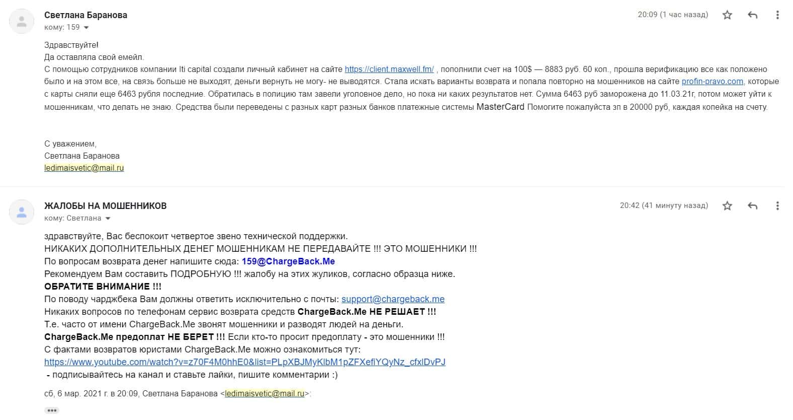 - Жалоба на мошеннические организации МаксВелл ФМ и ИТИ Капитал