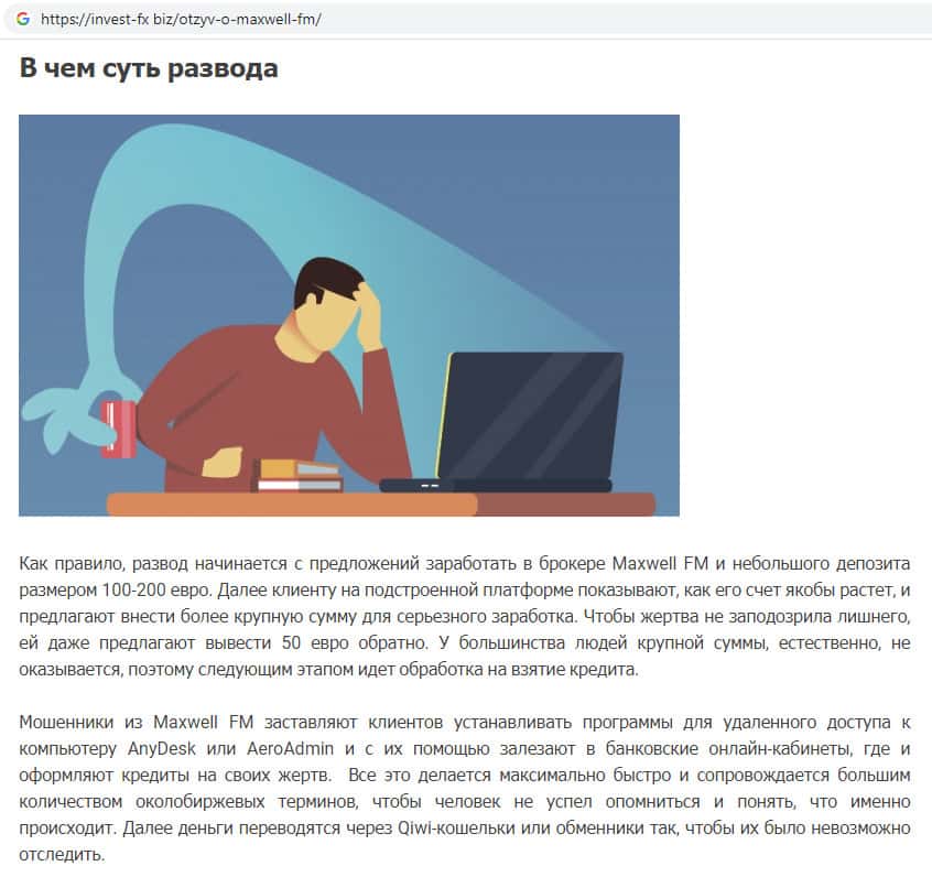 Жулики MaxWell Fm опубликовывают фейковые статьи во всемирной паутине