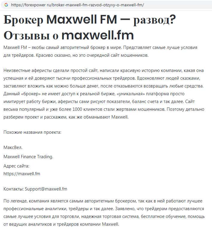 - Все пользовательские отзывы о скам-проекте MaxWell Fm правдивы