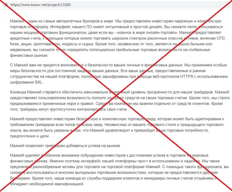 baxov net - сайт содержащий фейковую информацию о скам-проекте Макс Велл
