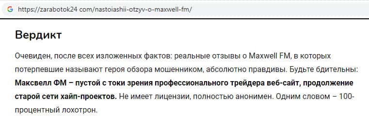 Все пользовательские отзывы о скам-проекте MaxWell Fm правдивы
