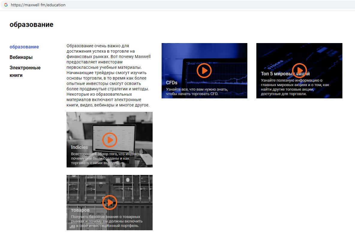 Шулера MaxWell Fm рассказывают сказки о том, что они якобы занимаются обучающей деятельностью, а именно обучением псевдо-науке, трейдингу. Единственное чему действительно можно обучиться на сайте скам-брокера - это больше не связываться с подобными мошенническими конторами.
