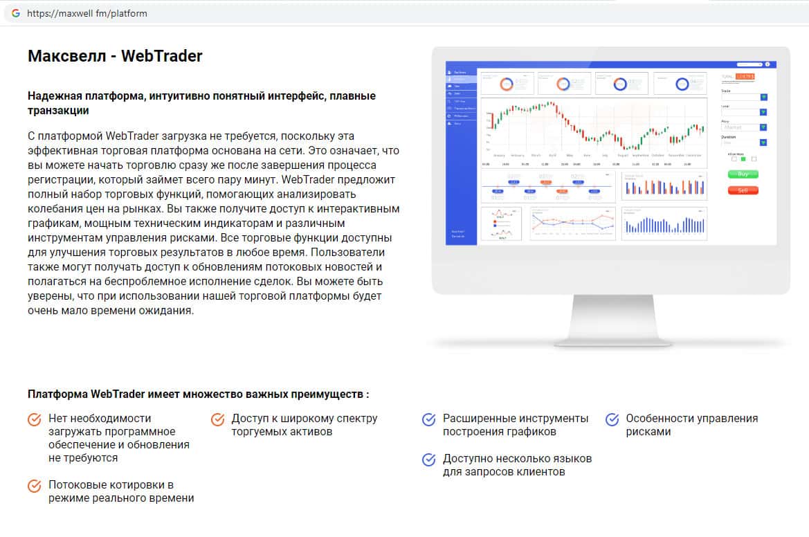 Что считают преимуществами своей торговой платформы мошенники MaxWell Fm?