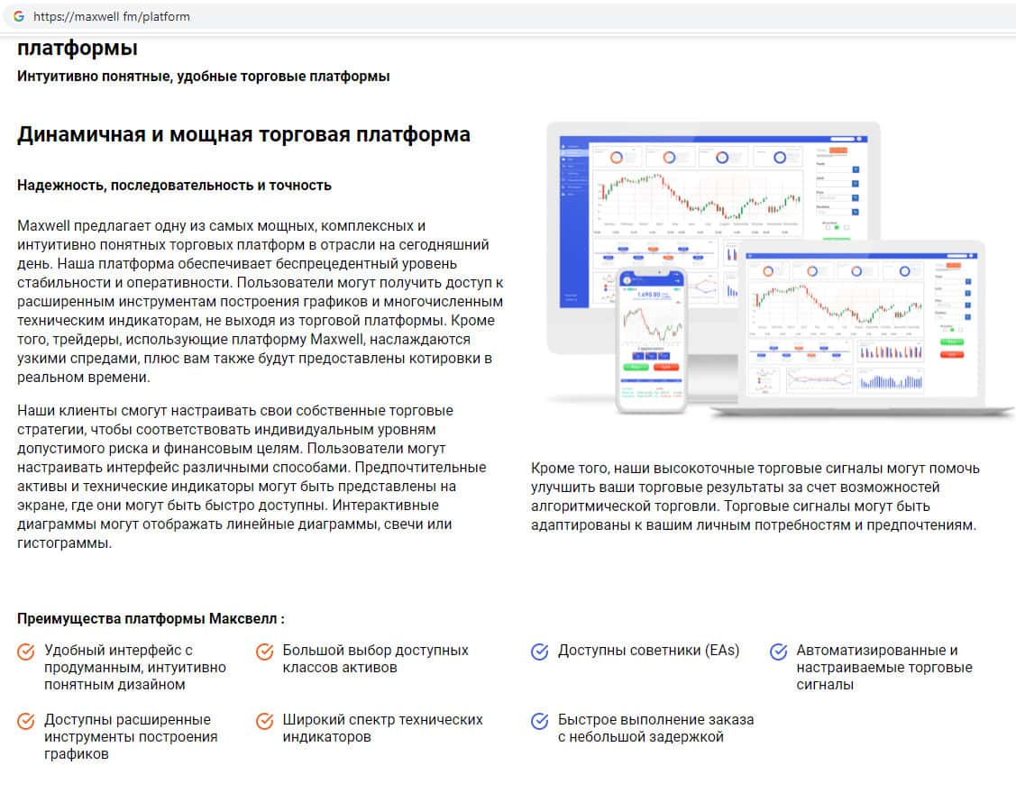 - Что считают преимуществами своей торговой платформы мошенники MaxWell Fm?