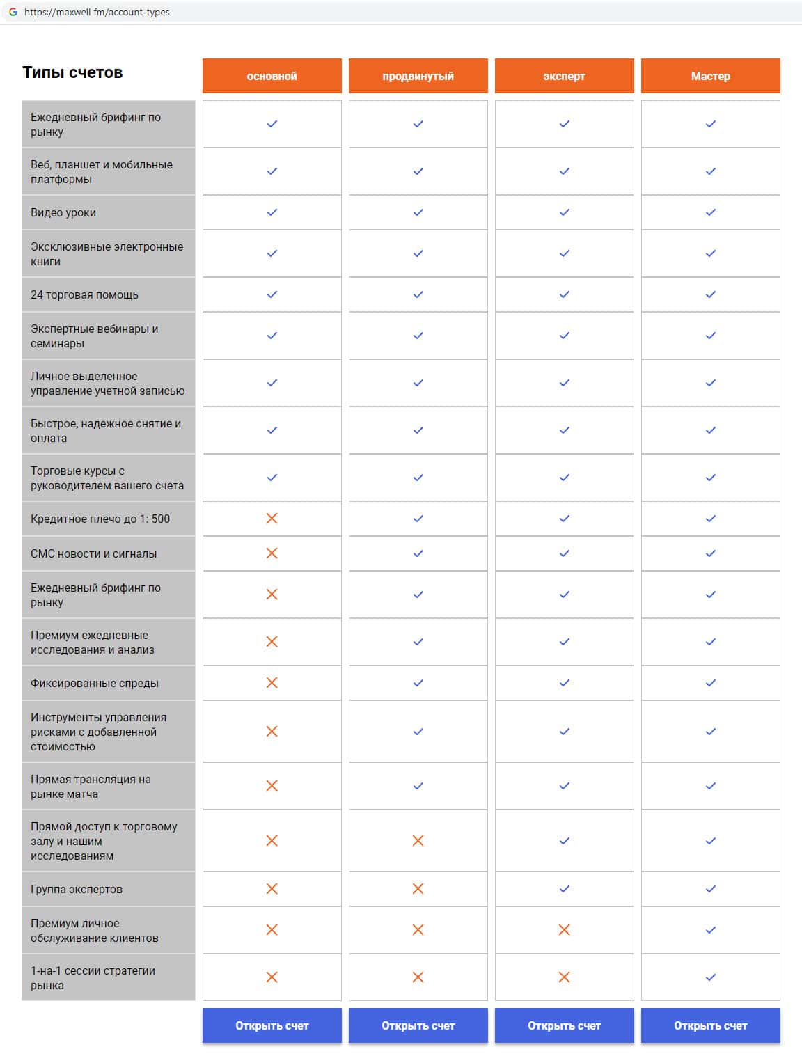 - Типы торговых счетов представленных на сайте скам-брокера MaxWell Fm