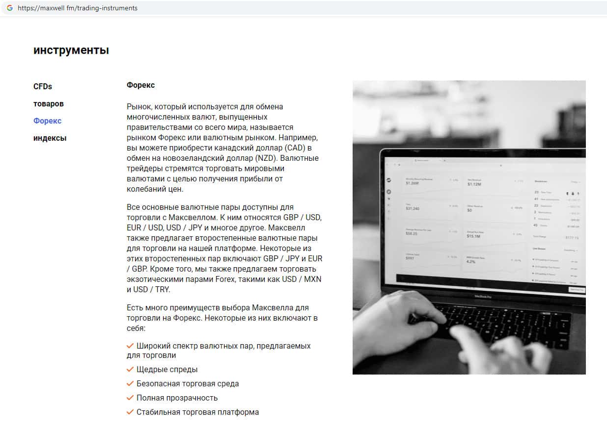 Финансовые инструменты предлагаемые на интернет-портале псевдо-брокерской конторы Макс Велл