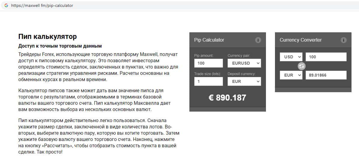 - Калькулятор для подсчета курса валют на онлайн-ресурсе скам-конторы MaxWell Fm