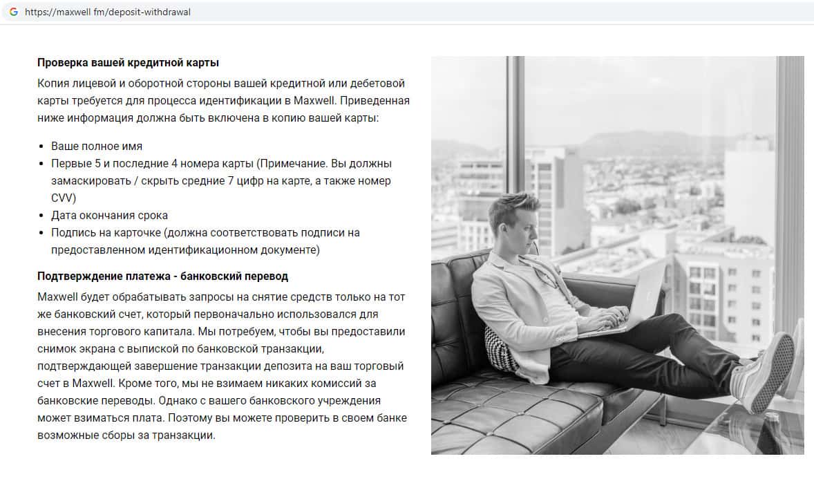 - Возможность снять денежные средства со счета конторы MaxWell Fm не подтверждена