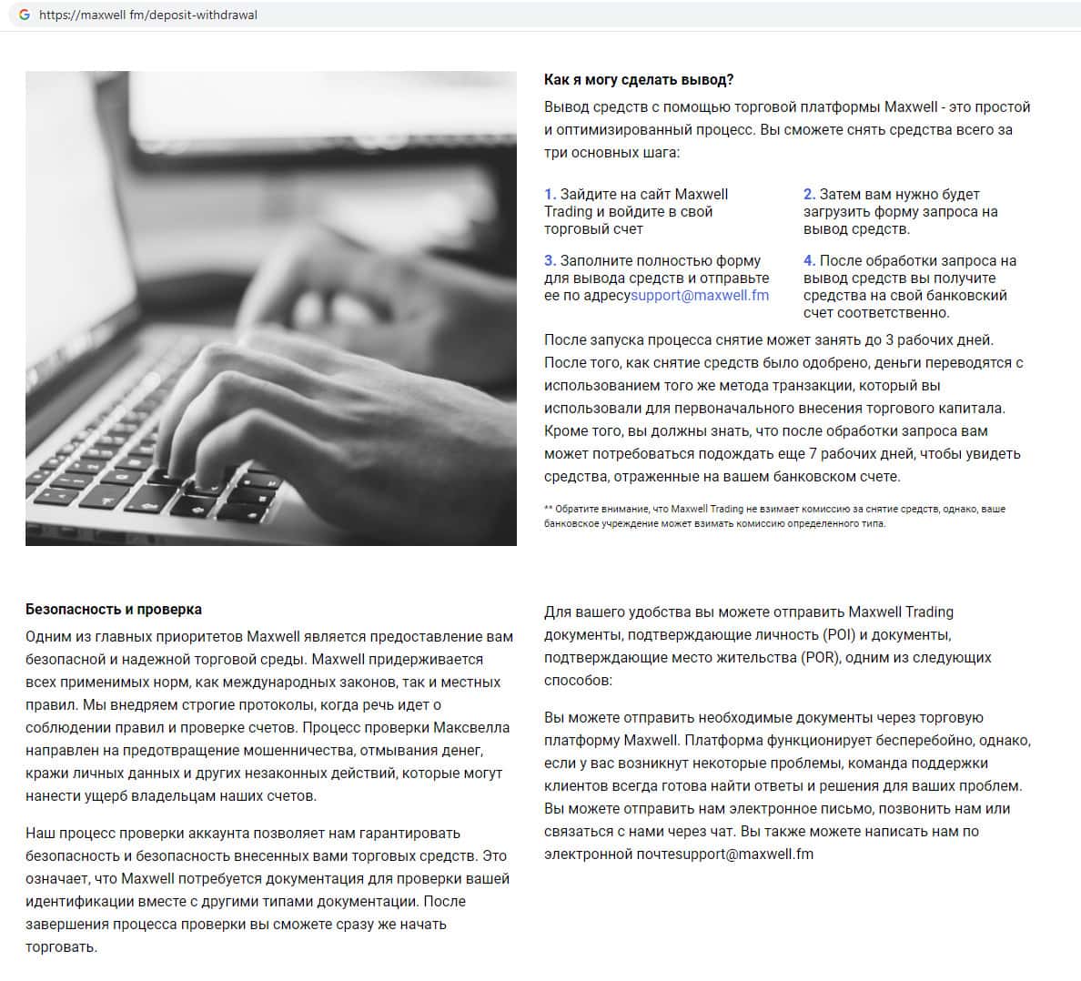 - адрес электронной почты брокерской конторы MaxWell Fm: support@maxwell fm