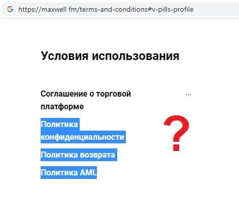 - Условия пользования сайтом на сайте интернет-лохотрона Макс Велл