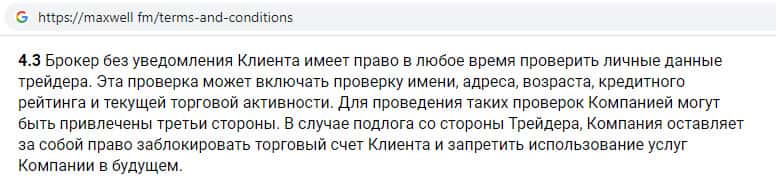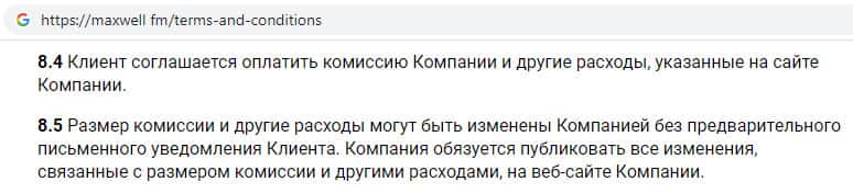 Условия пользования сайтом на сайте интернет-лохотрона Макс Велл