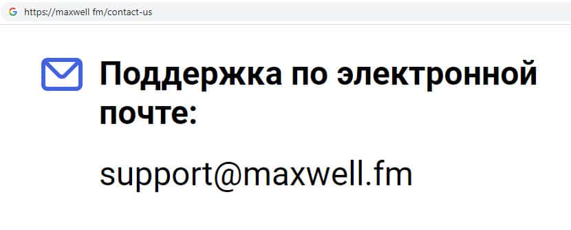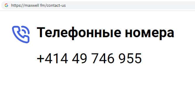 - Контактная информация мошеннической организации MaxWell Fm