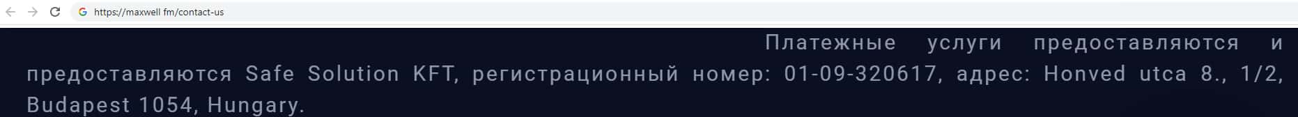 Жульническая контора Макс Велл, главный офис которой находится в городе Будапешт, на своем официальном сайте указала номер контактного телефона своей организации, а так же указывает адрес электронной почты своей конторы, который указан ниже: